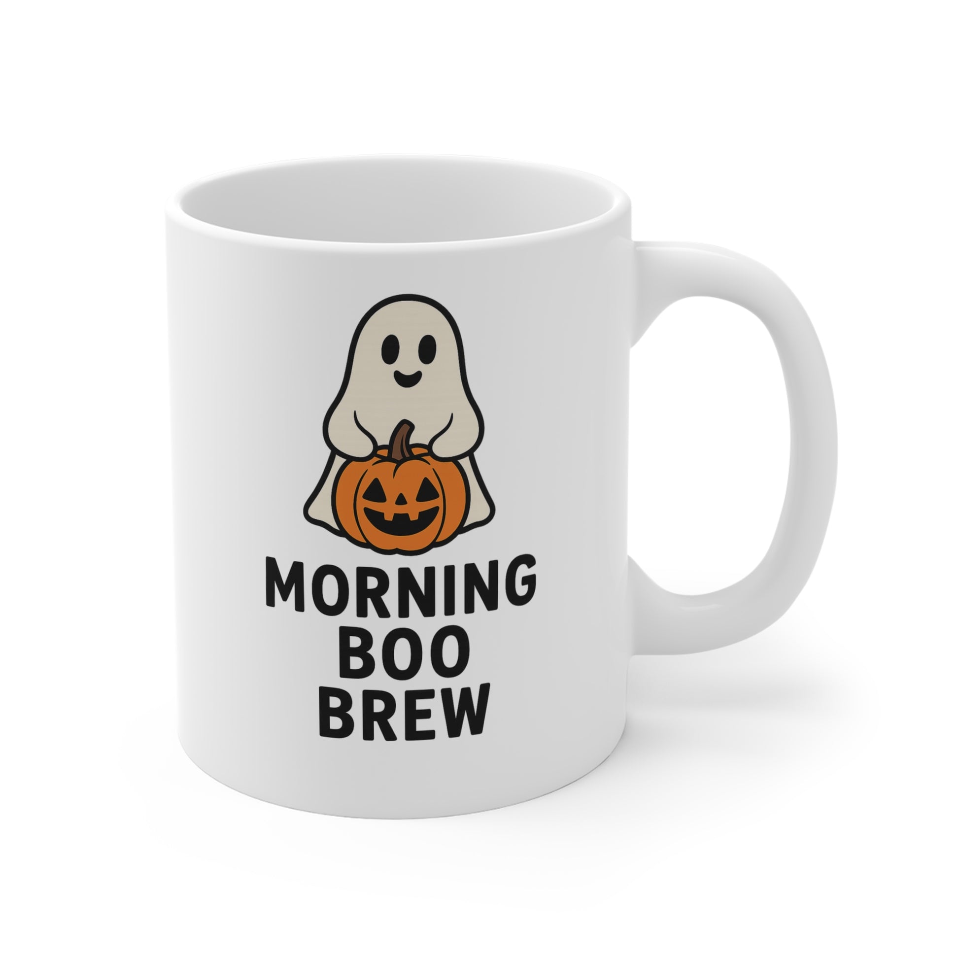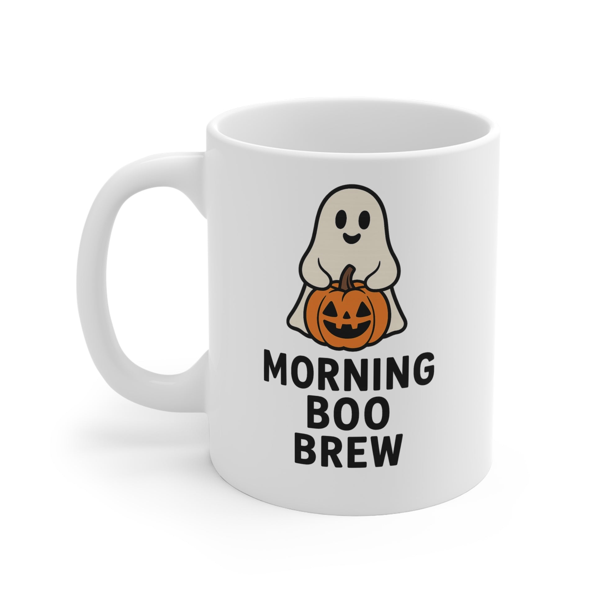 Halloween Ghost Coffee Mug – “Morning Boo Brew” Funny Spooky Cup | 11oz